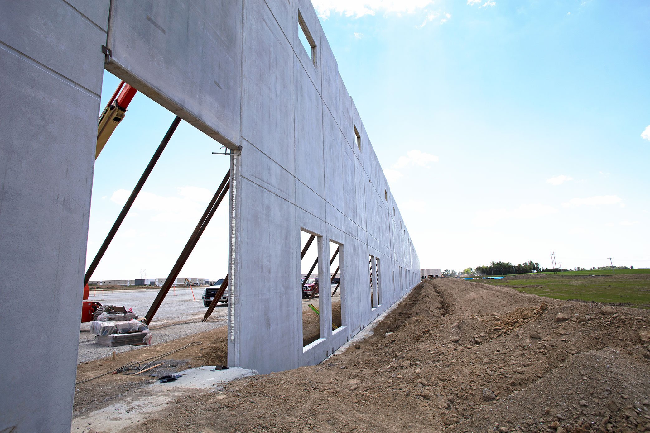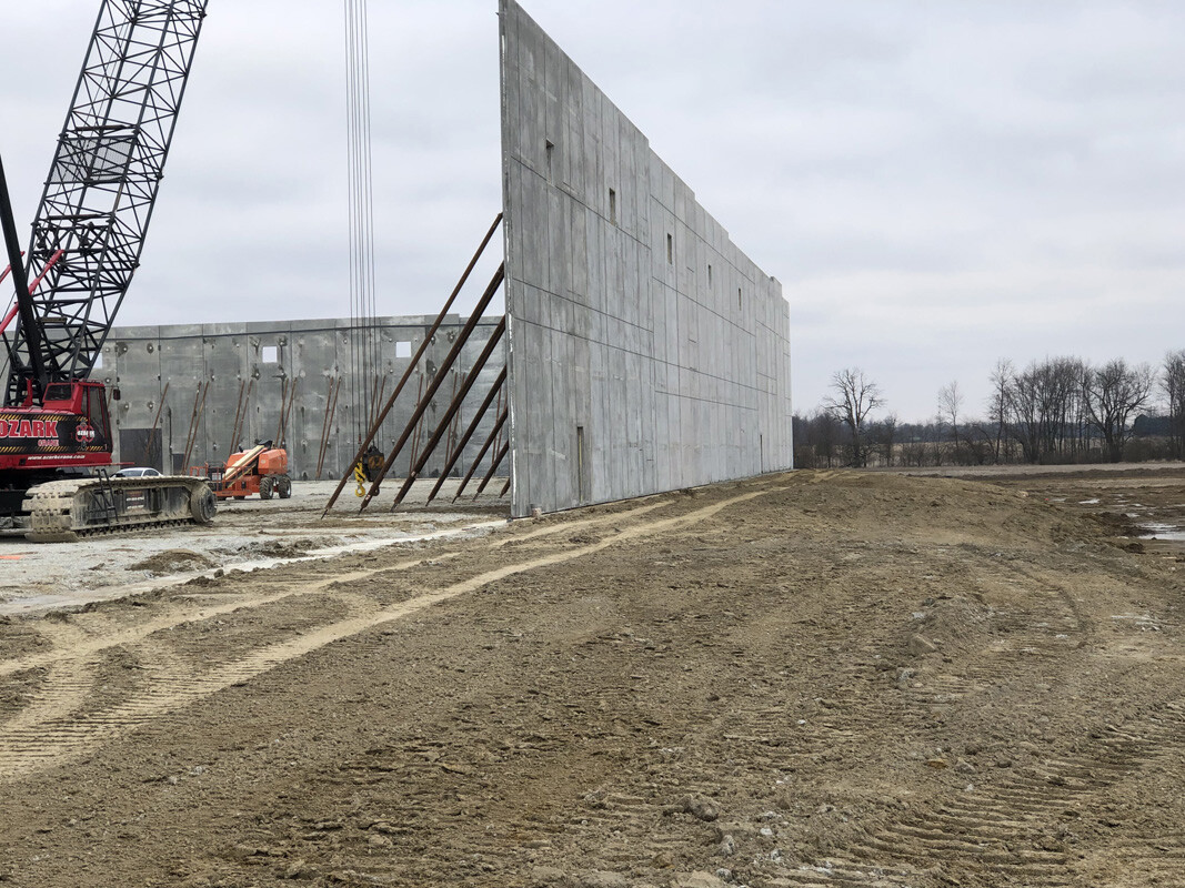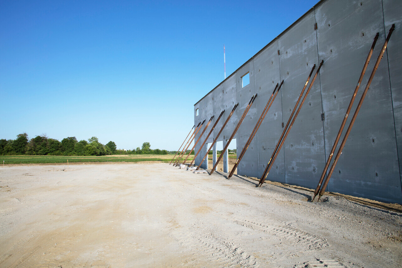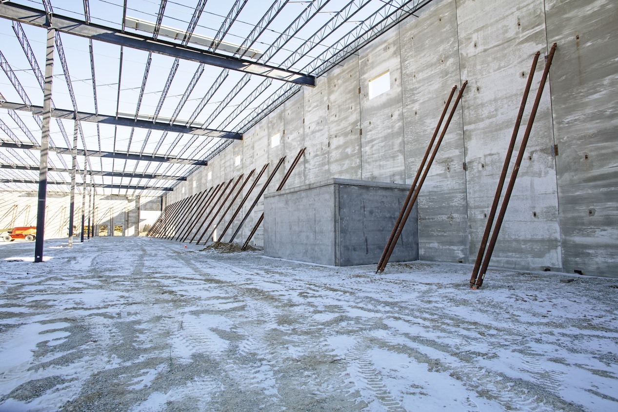 Insulated wall panels can be produced in large quantities with short lead times, leading to faster completion of industrial buildings. Panels can act as both exterior and interior walls without any additional finishing work or insulation, and their inherent strength can withstand forklift impacts. Openings for loading docks and hardware for trailer securements can be cast during production to further accelerate the construction schedule.