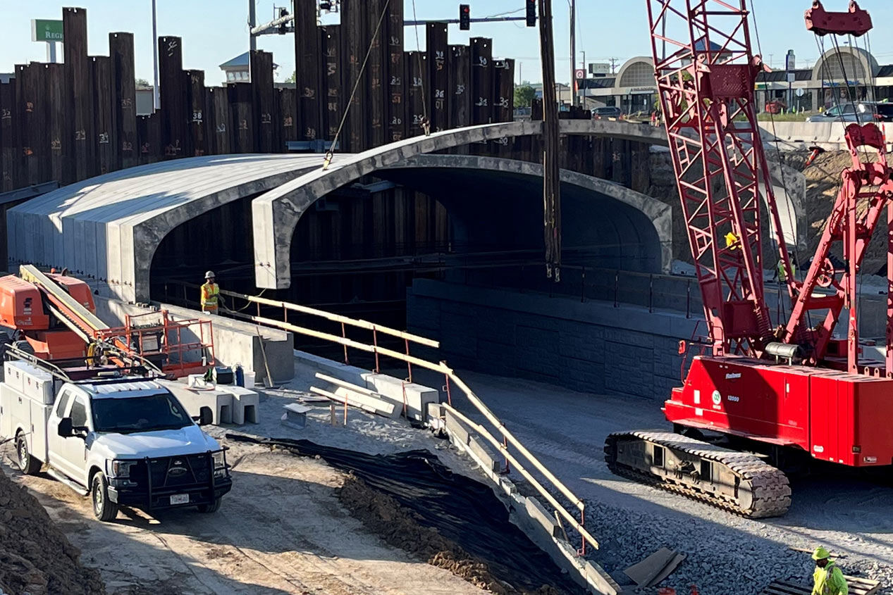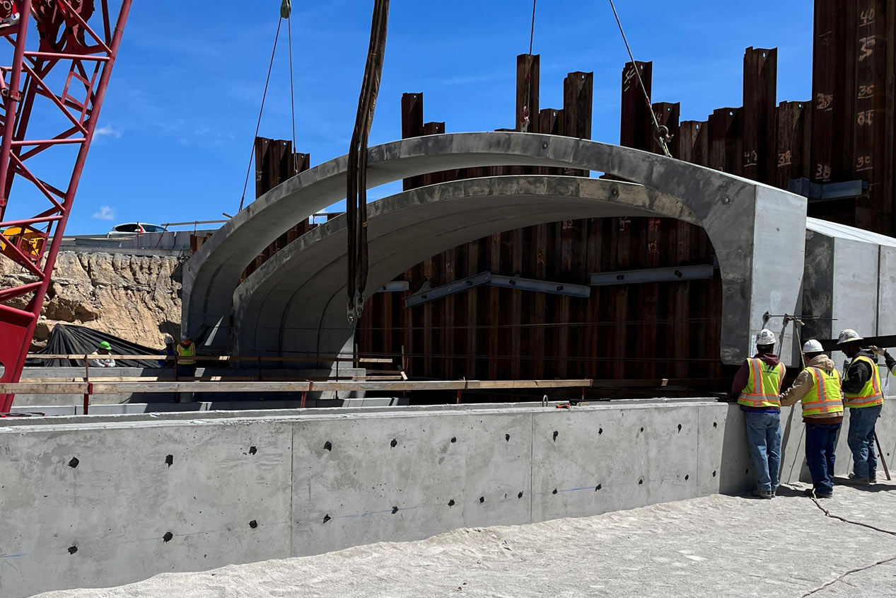 This project features 54-foot precast concrete arches. These bridge systems are ideal for infrastructure updates because of their prolonged life expectancy, which can reach and exceed 100 years.