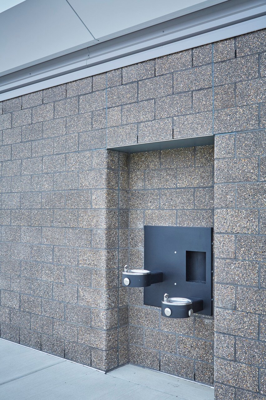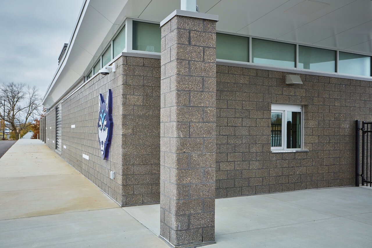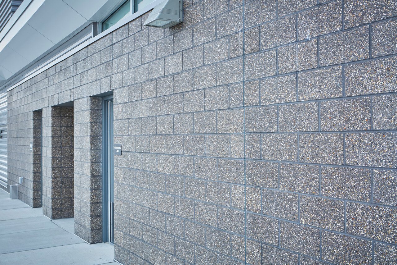 County Materials’ Premier Ultra Burnished Masonry Units were used to update Ashley Field for their distinct appearance and structural benefits. Each unit undergoes a grinding process to expose the natural aggregates on the units’ smooth surface, emulating the appearance of hand-cut stone, with the structural and cost benefits of concrete masonry.