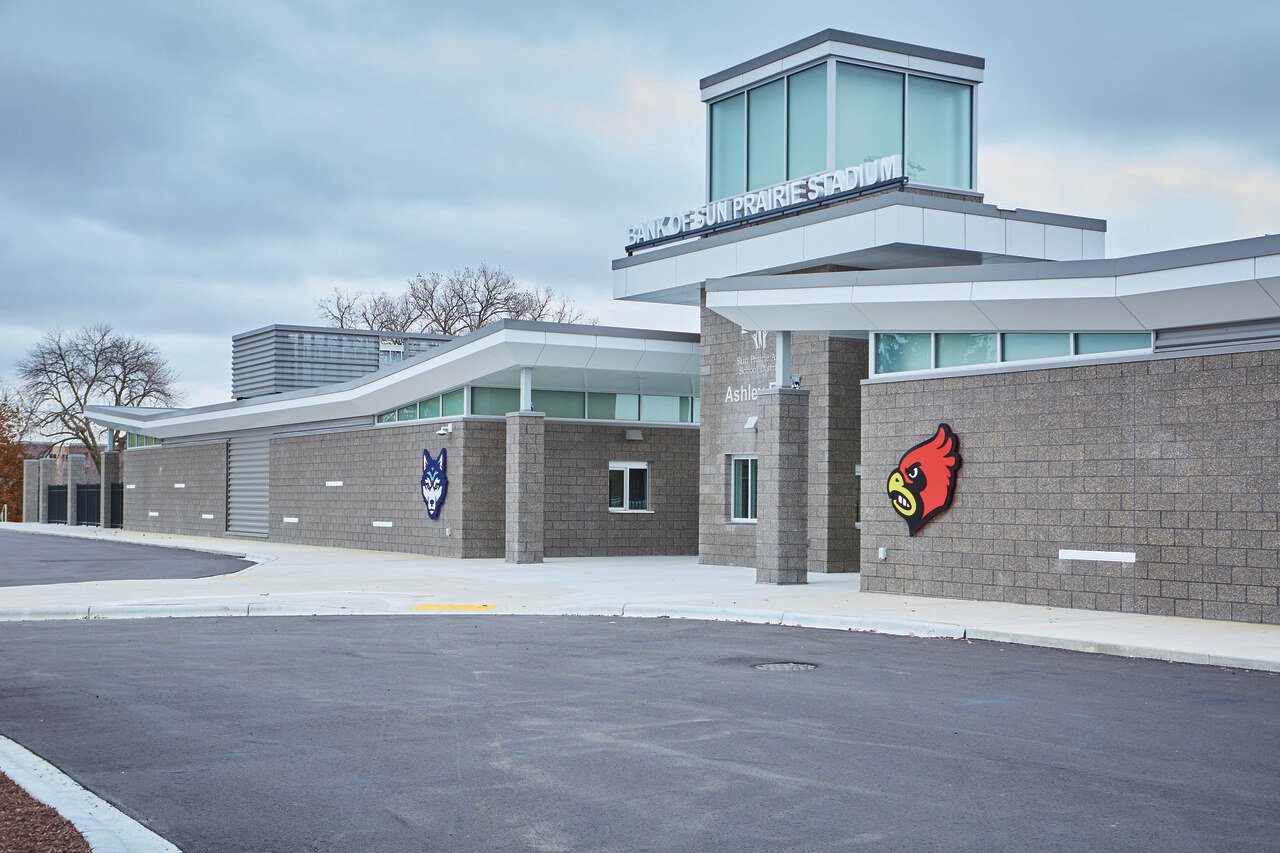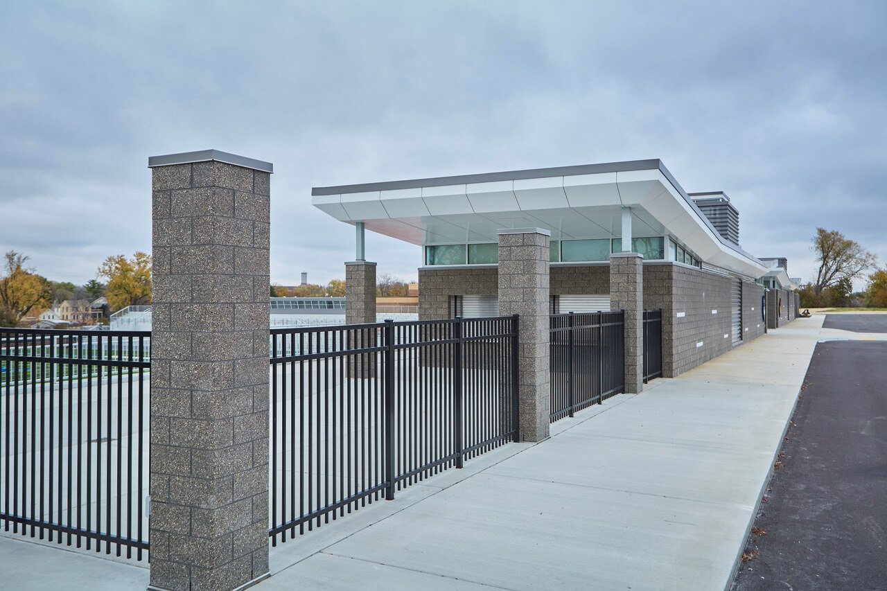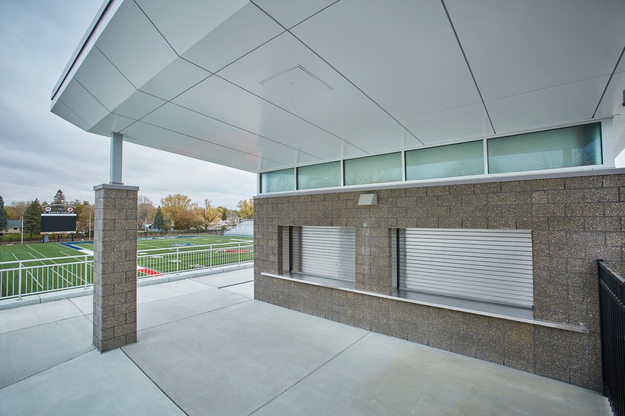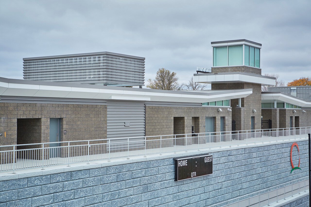 County Materials’ Premier Ultra Burnished Masonry Units were used to update Ashley Field for their distinct appearance and structural benefits. Each unit undergoes a grinding process to expose the natural aggregates on the units’ smooth surface, emulating the appearance of hand-cut stone, with the structural and cost benefits of concrete masonry.
