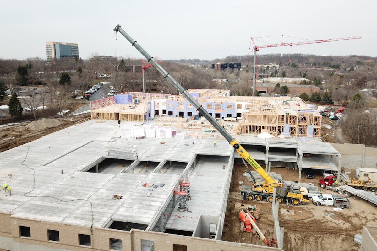 RiZE at Opus Park is a six-story, 322-unit multi-family housing complex that is part of one of the largest housing projects in the Minneapolis – Saint Paul metro. The residential structure rests on a two-story parking garage foundation, built with prestressed hollowcore. Hollowcore was specified for its structural capabilities and prolonged service life that will keep residents safe for many years to come. In total, more than 191,000 SF of hollowcore planks, 730 SF of solid slabs, and 10,150 LF of beams and columns were used to construct the complex’s foundation.