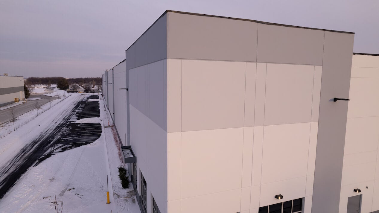 Developers seeking high-performance insulated wall panels relied on our team to supply prestressed wall panels for two industrial warehouses in Aurora, Illinois. Durable and economical, insulated wall panels are manufactured, delivered, and installed efficiently for accelerated project schedules. We supplied 285 wall panels comprised of more than 115,000 square feet for the Meridian Business Campus project.
